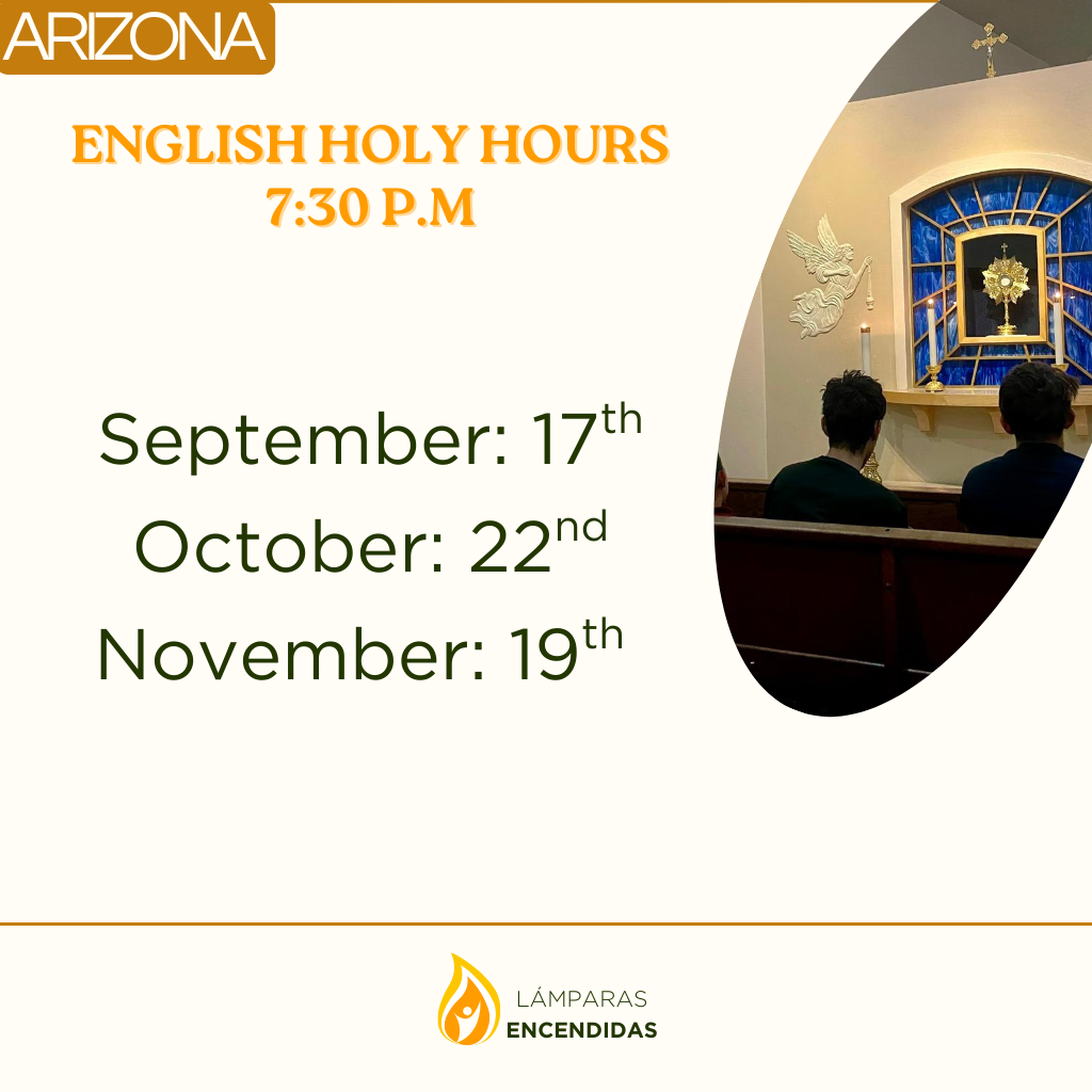 The adoration chapel open from Sunday 8:00pm to Saturday 7:00 am, located at 230 W Galveston St., Chandler, AZ 85225.