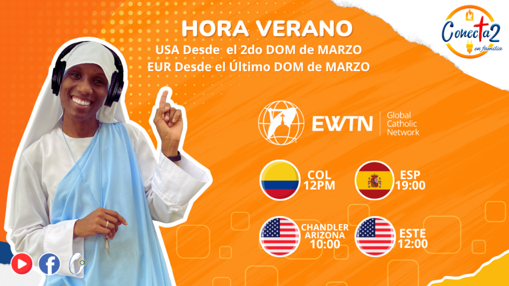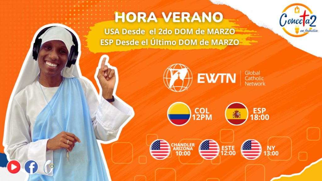 Les invitamos a que sintonicen el programa de Conecta2 a través de nuestras redes y los diferentes medios de EWTN (Radio Católica Mundial) en los siguientes horarios: